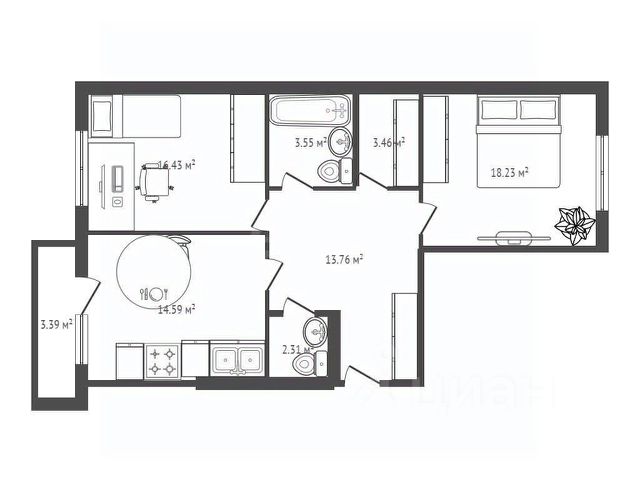 - Общая площадь 75.2 м2