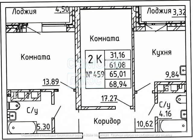 - Общая площадь: 60.4 м2