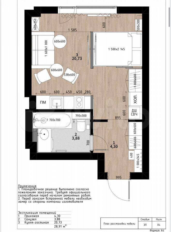 - Общая площадь 29.7 м2