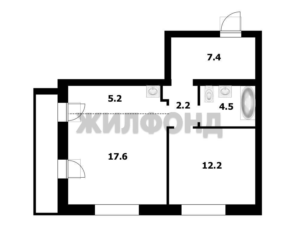 - Общая площадь: 51.2 м2