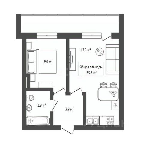 - Общая площадь: 35.3 м2