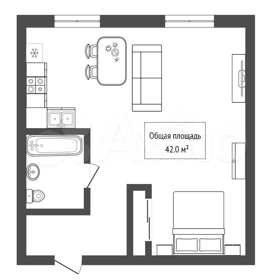 - Общая площадь: 42 м2