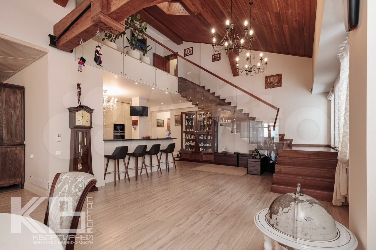 Предлагаем к покупке эксклюзивный объект! Элитная квартира по типу шале — редкое предложение на рынке недвижимости Новосибирска. Жилье премиум класса в малонаселенной зоне с шикарным видом на реку Обь идеально подойдет для тех, кто ценит комфорт, эксклюзивность и гармонию с природой! Просторная квартира в два этажа была создана по индивидуальному проекту. На первом уровне расположены 2 спальные комнаты, 2 санузла, несколько подсобных помещений. Сердцем квартиры является большая кухня — гостиная 108,4 м2, которая будет излюбленным местом для встречи гостей, а также для совместного времяпрепровождения Вашей семьи. Из гостиной расположен выход на панорамную террасу 50 м2 с потрясающим видом на реку и лес. На втором этаже расположены две спальные комнаты (хозяйская с собственной гардеробной и отдельным балконом), 2 санузла. Идеальная планировка для проживания большой и дружной семьи. Каждый сантиметр жилплощади продуман по своему дизайну и функциональности. При отделке были использованы исключительно качественные материалы. Вся мебель была изготовлена по индивидуальному заказу. Объект продается со всем наполнением (мебель и бытовая техника). Это райский уголок расположен всего в 10 минутах езды от площади Калинина. Очень живописная территория в сосновом бору будет радовать своим красками в любое время года. Рядом с домом находится спа-центр «Гринвуд». Ресторан «На даче» расположен в шаговой доступности. Территория комплекса огорожена. Под домом находится подземный паркинг, 2 машиноместа продается вместе с квартирой. Приглашаем Вас на просмотр нашего уникального предложения!