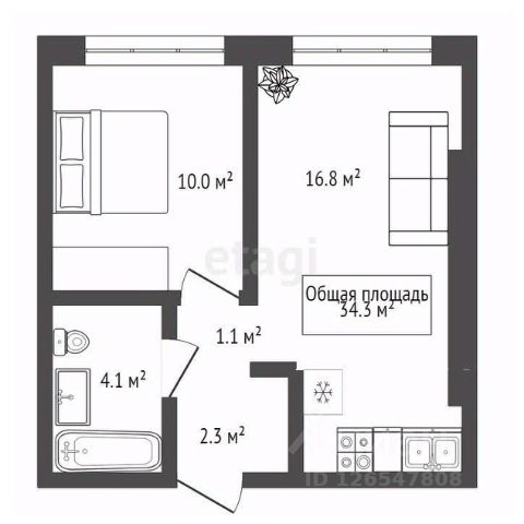 - Общая площадь: 35 м2