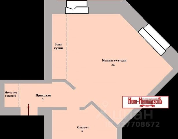 - Общая площадь: 37 м2