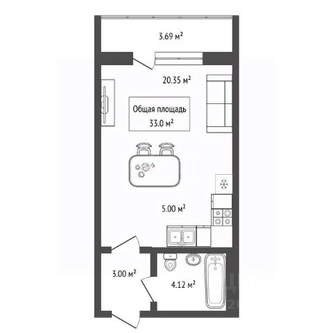 - Общая площадь: 33 м2