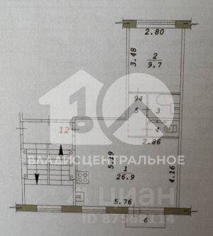 - Общая площадь: 42.6 м2
