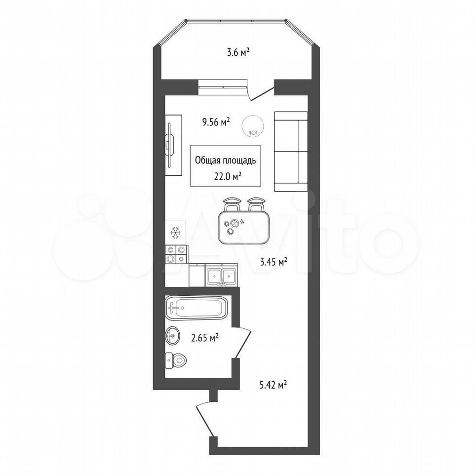 - Общая площадь: 22 м2