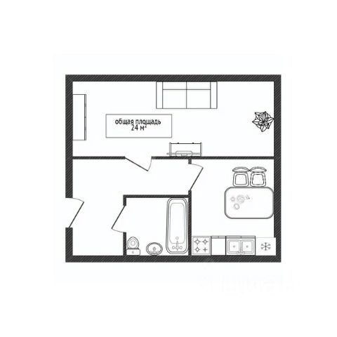 - Общая площадь 24 м2