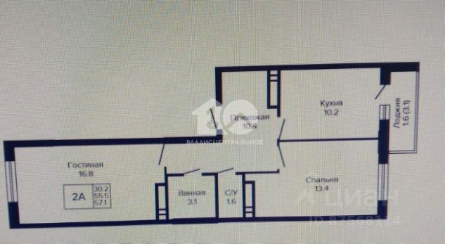 - Общая площадь 55.3 м2