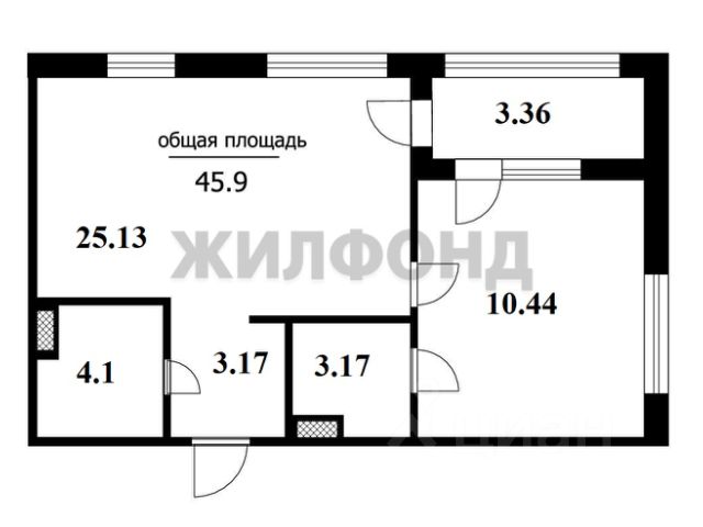- Общая площадь 45.5 м2