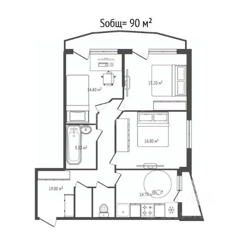 - Общая площадь: 90 м2