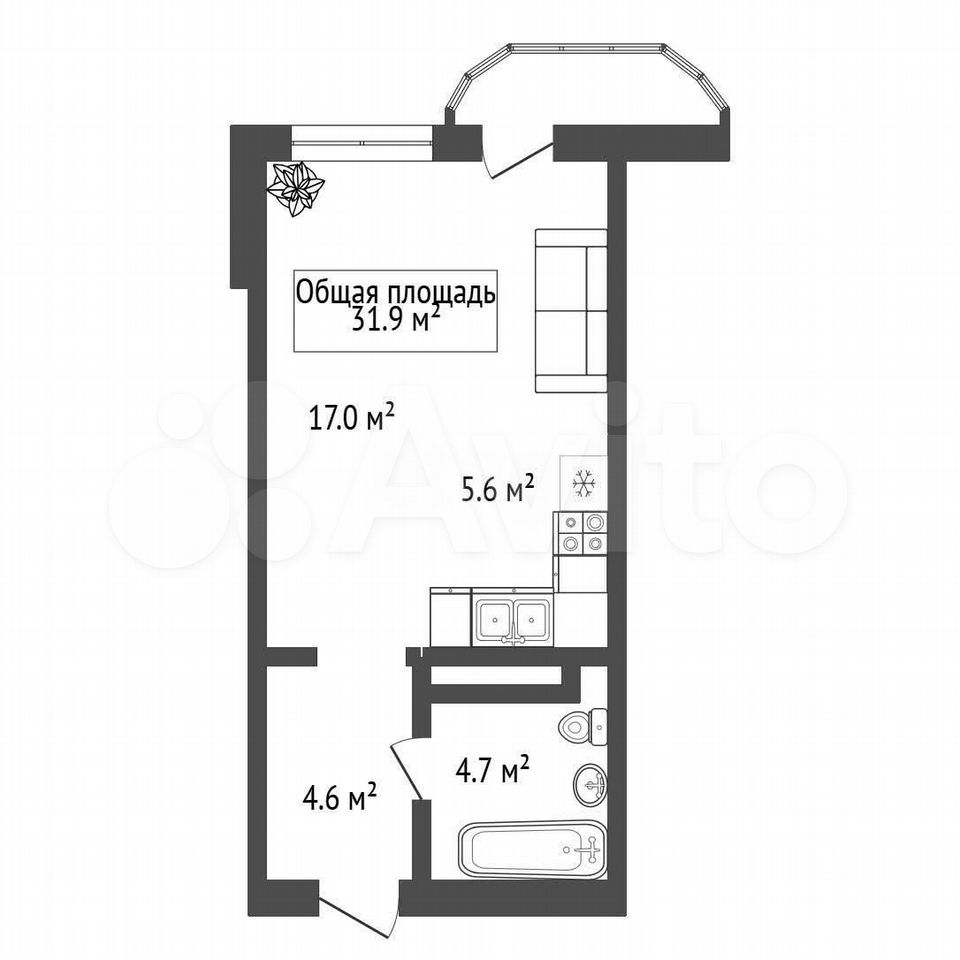 - Общая площадь: 31.9 м2