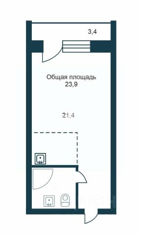 - Общая площадь 23.9 м2