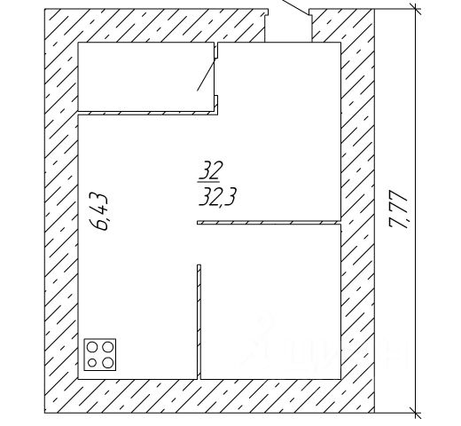 - Общая площадь 32.3 м2