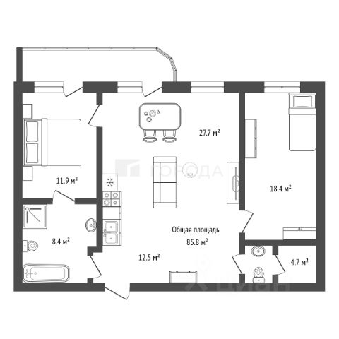 - Общая площадь 85.8 м2