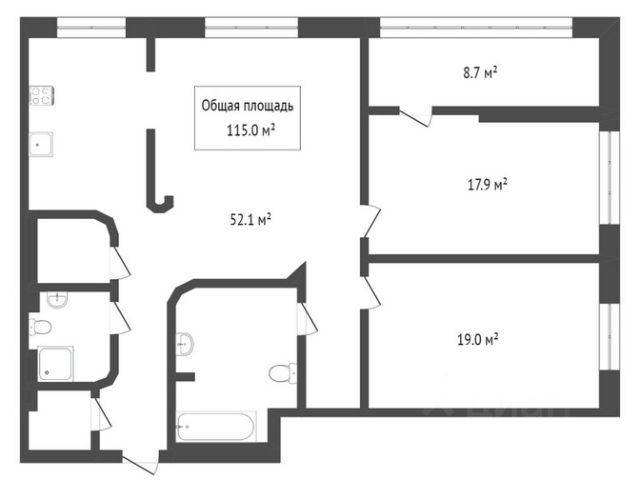 - Общая площадь: 116 м2