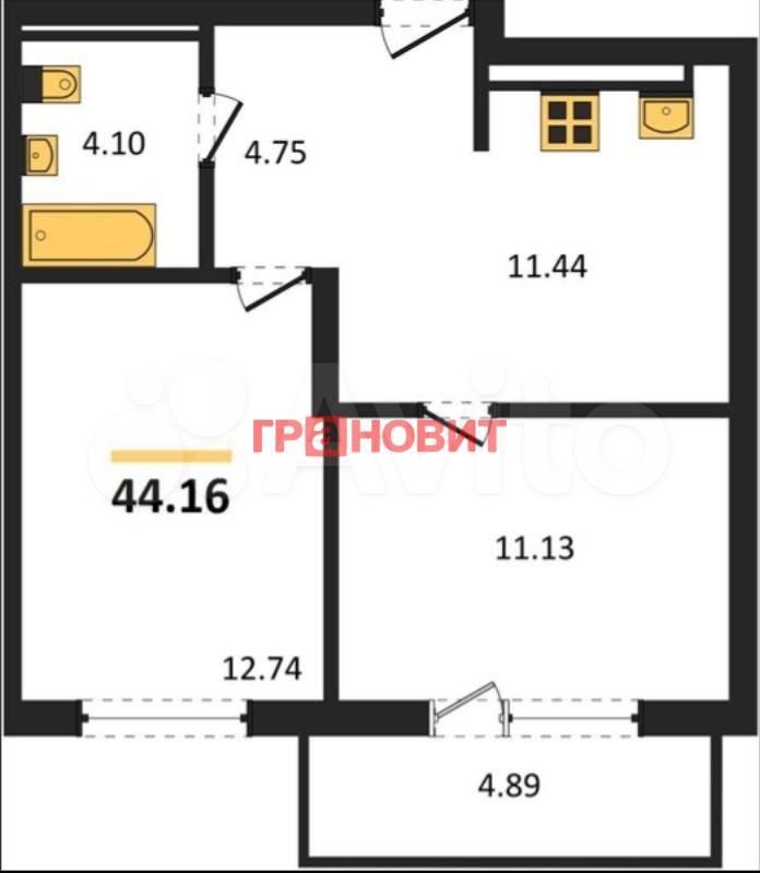 - Общая площадь: 44.2 м2