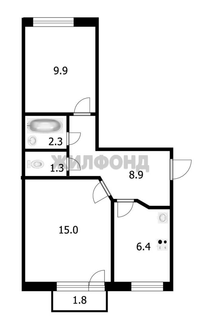 - Общая площадь 43.8 м2