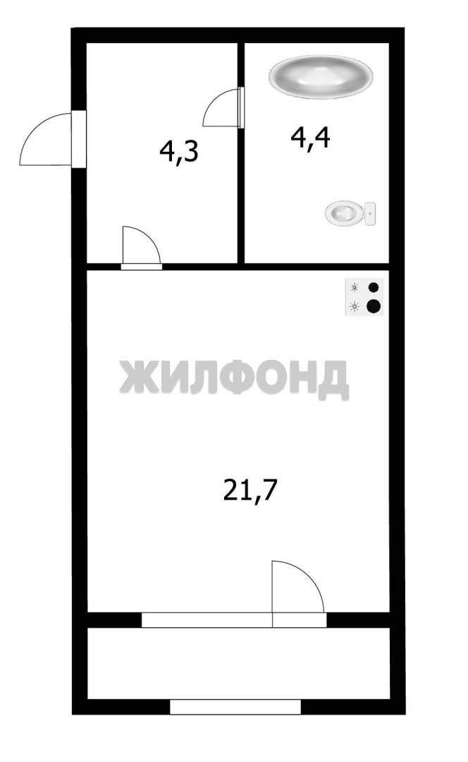 - Жилая площадь 21.7 м2