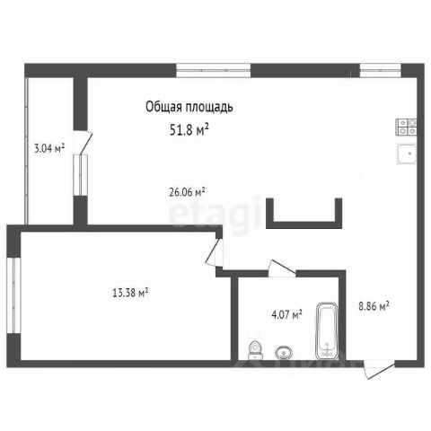 - Общая площадь: 51.8 м2