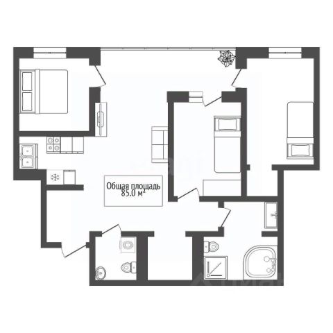 - Общая площадь 85 м2