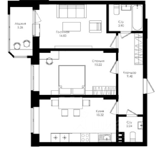 - Общая площадь: 61 м2