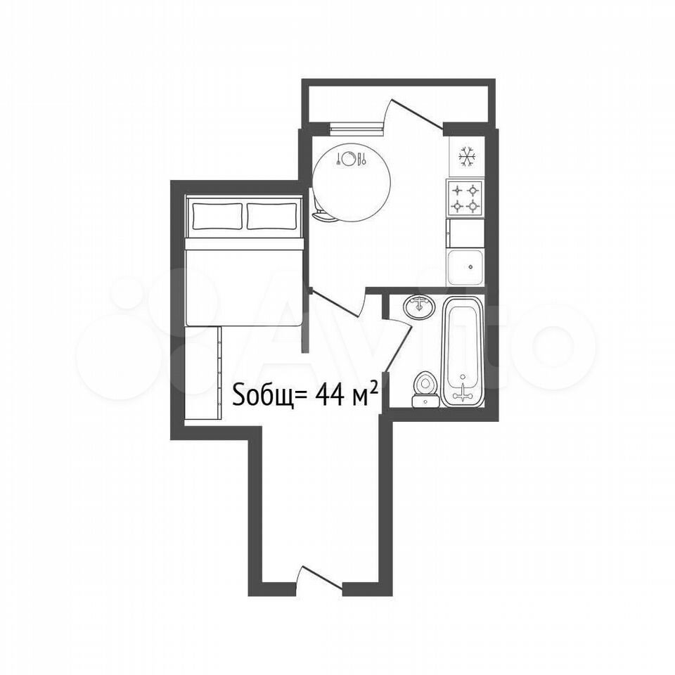 - Общая площадь: 44 м2