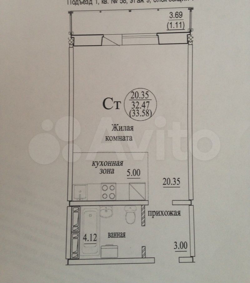 - Общая площадь: 32.3 м2