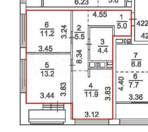 - Общая площадь: 51.2 м2