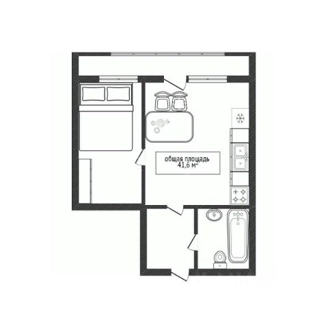 - Общая площадь: 41.6 м2