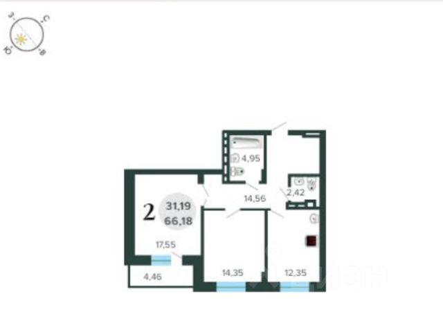 - Общая площадь 66 м2