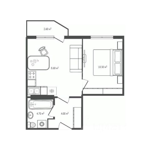 - Общая площадь 27.4 м2