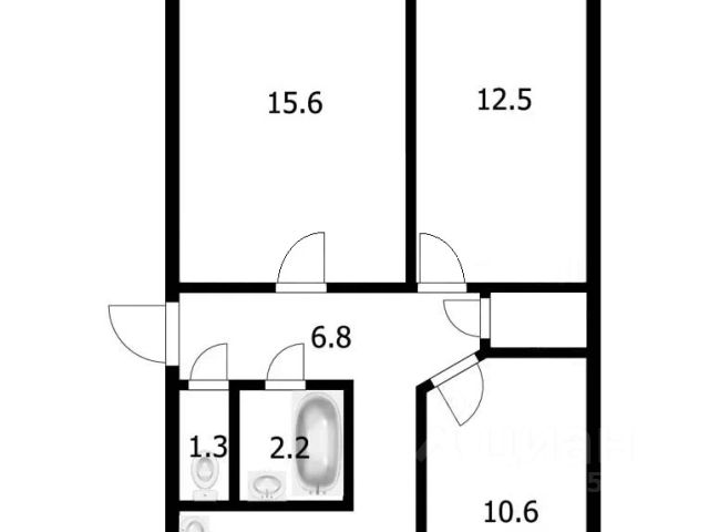 - Общая площадь: 58.8 м2