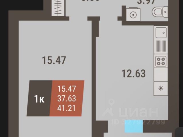 - Общая площадь: 41.2 м2