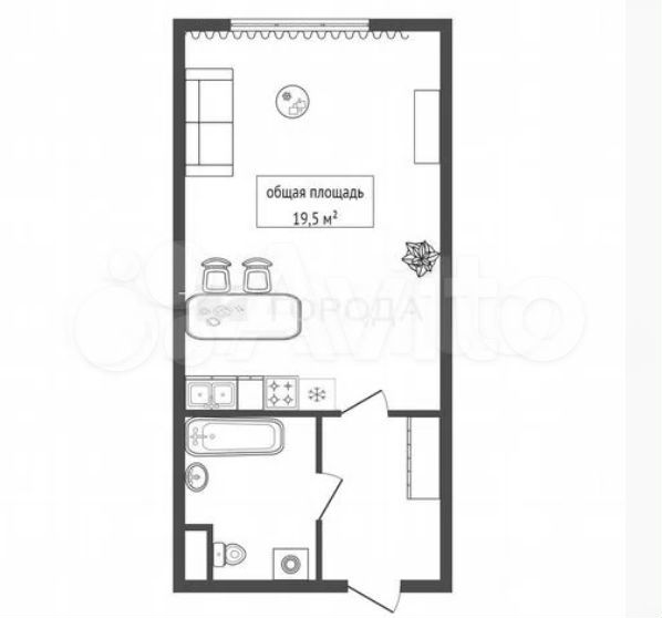 - Общая площадь: 19.5 м2