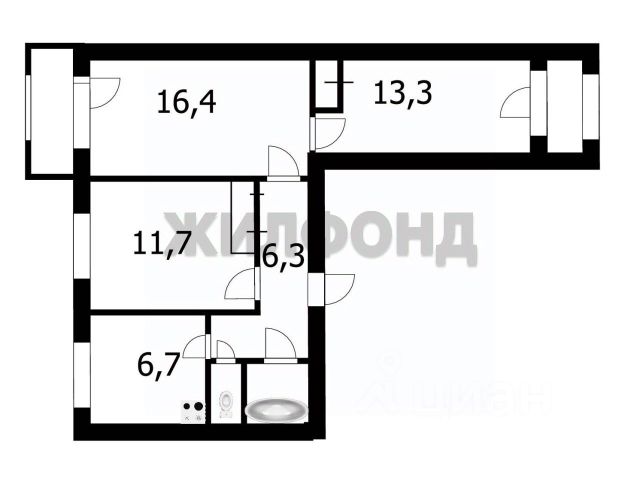 - Общая площадь: 58.9 м2