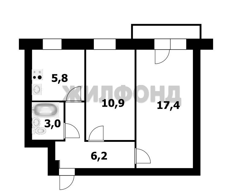 - Общая площадь: 44.1 м2