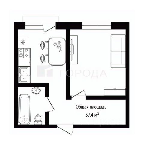 - Общая площадь: 37.4 м2