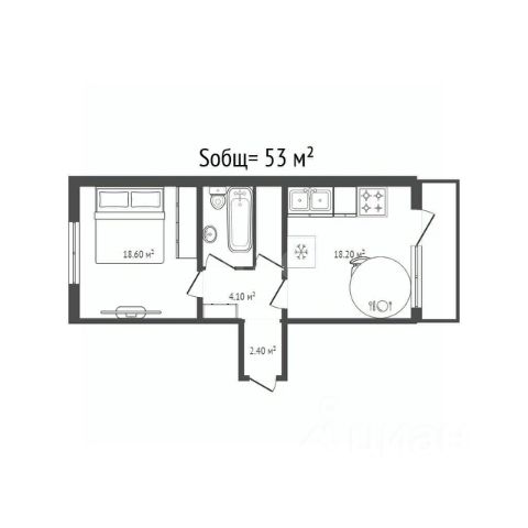 - Общая площадь 53 м2