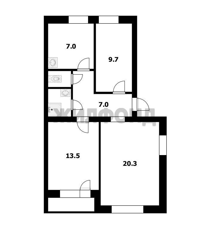 - Общая площадь: 62.9 м2