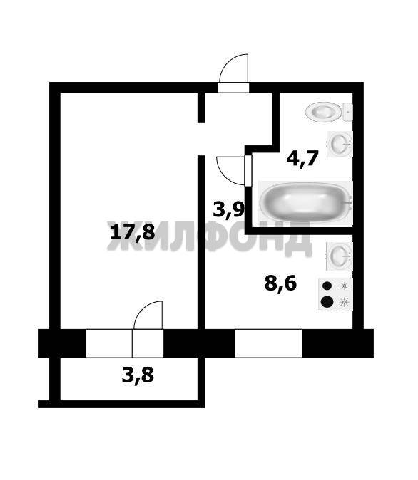 - Жилая площадь: 18 м2