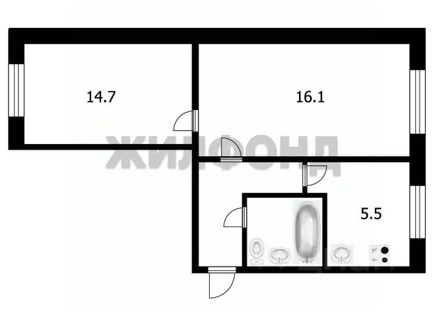 - Общая площадь: 43.5 м2