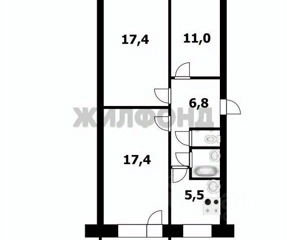 - Общая площадь: 62.3 м2