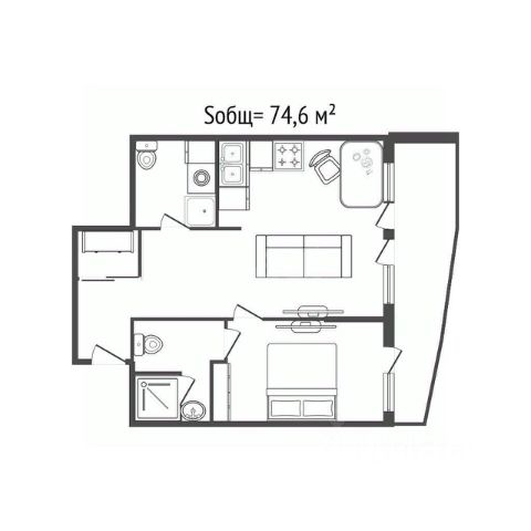 - Общая площадь 72.6 м2