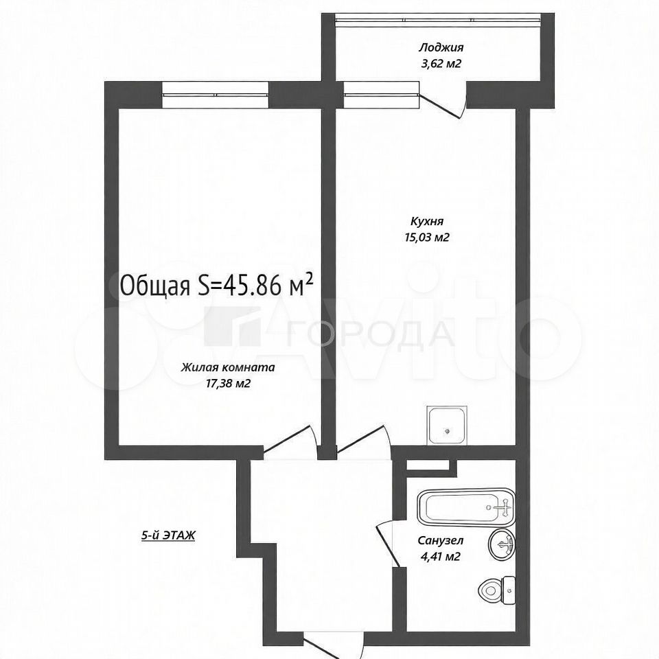 - Общая площадь: 45.9 м2