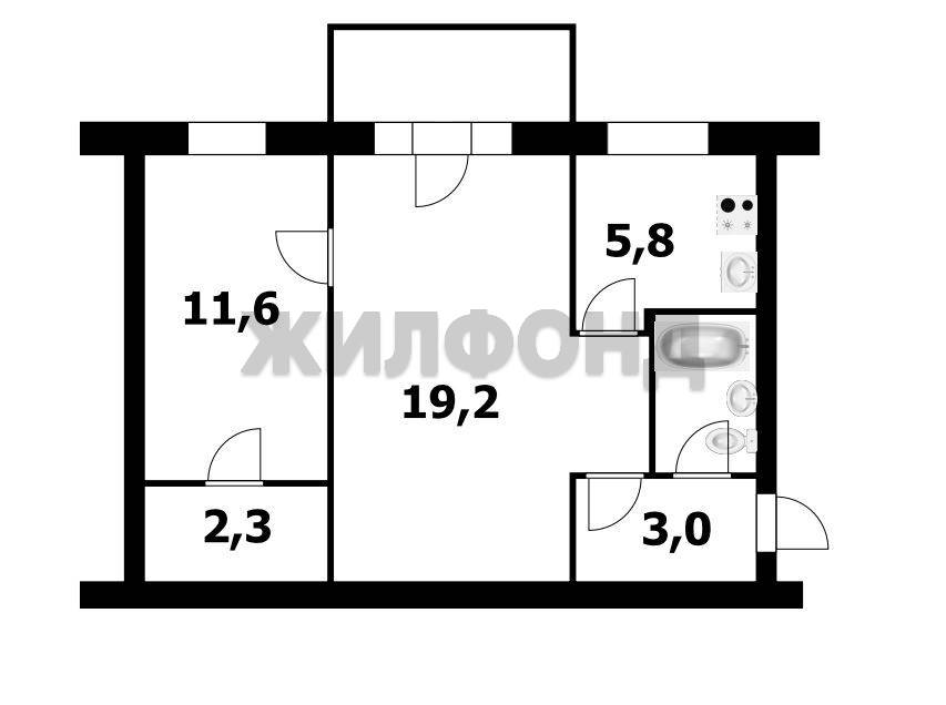 - Площадь кухни: 5.8 м2