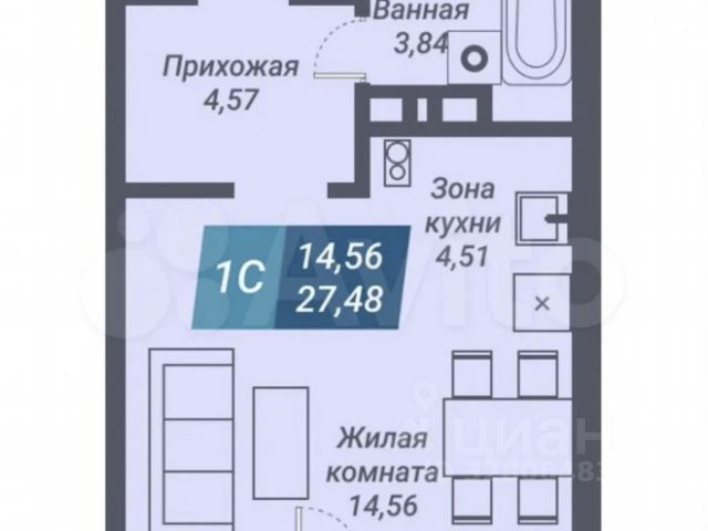 - Общая площадь 27.5 м2