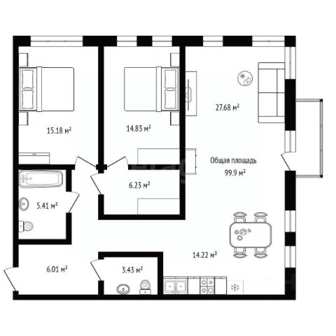 - Общая площадь: 99.9 м2