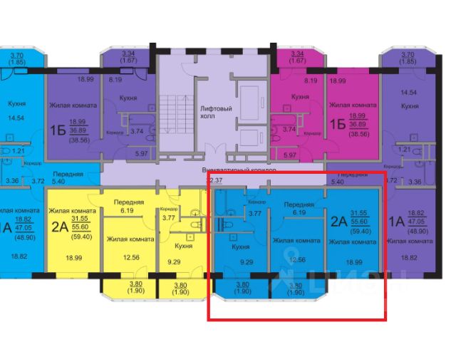 - Общая площадь: 55.6 м2